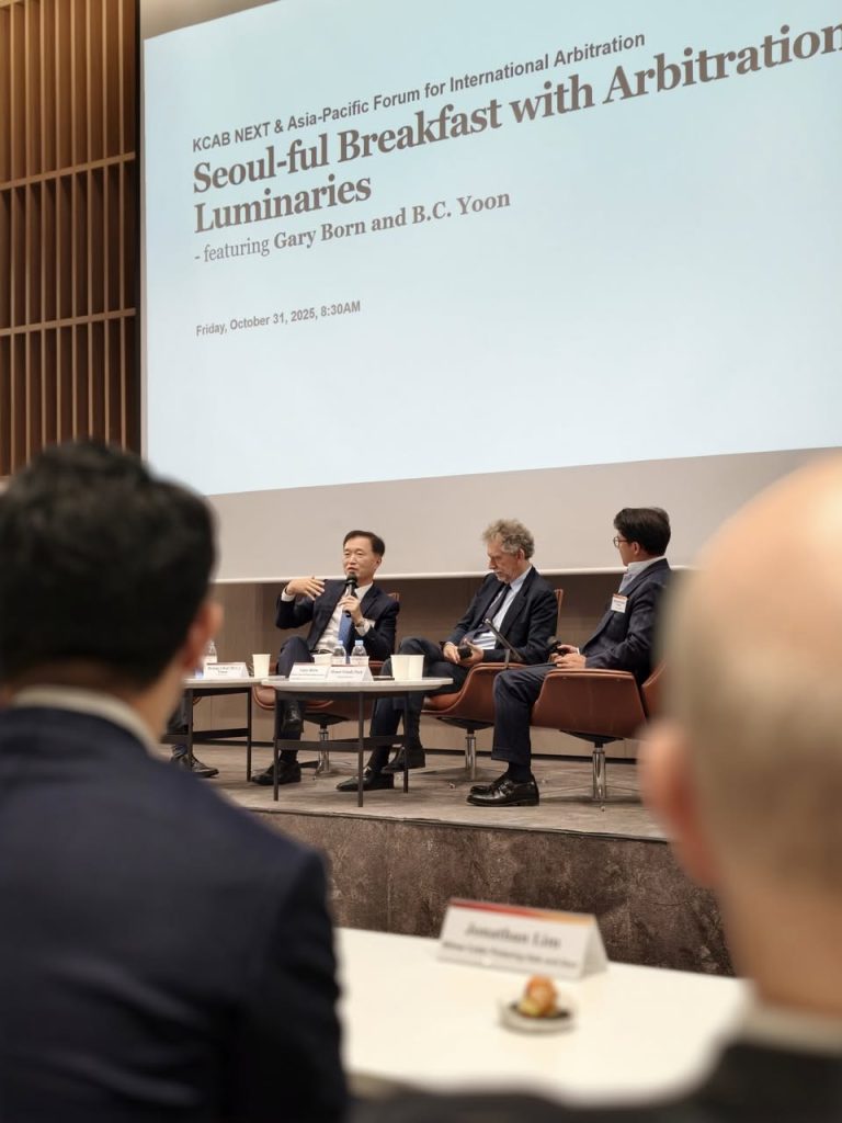 Luật sư Richard Luu (FCIArb, FSIArb) – Giám đốc điều hành Asia Legal – đã tham dự nhiều hoạt động trong khuôn khổ tuần lễ, trong đó nổi bật là chương trình “Seoul-ful Breakfast with Arbitration Luminaries”, buổi gặp gỡ thân mật với các chuyên gia hàng đầu thế giới. Tại đây, ông Richard Luu đã có dịp trao đổi chuyên môn cùng ông Gary Born, một trong những tên tuổi có tầm ảnh hưởng lớn nhất trong lĩnh vực trọng tài và tranh tụng quốc tế.