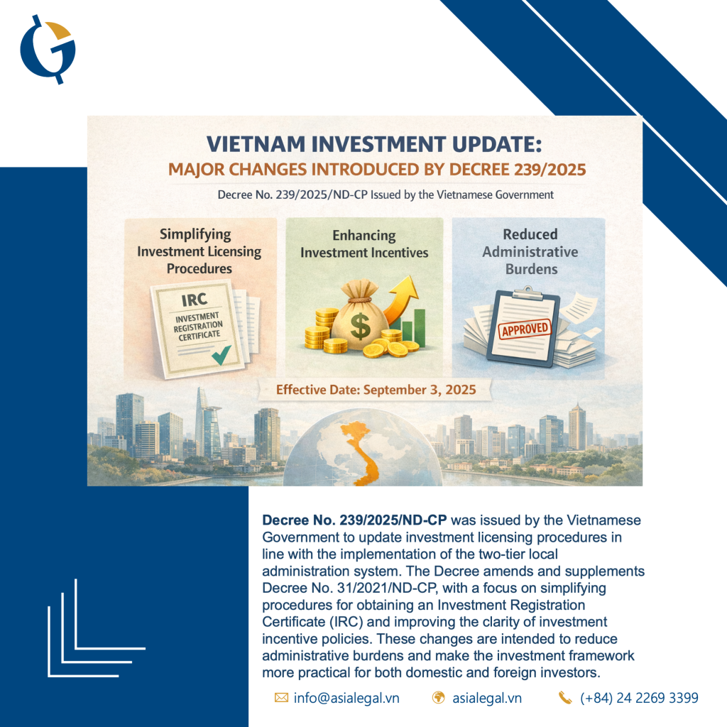 Asia Legal will continue to monitor regulatory developments and provide timely updates to our clients on the latest changes affecting investment and business operations in Vietnam.